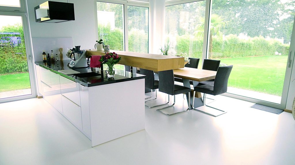 Wer sich auf der Suche nach einer dekorativen Wand- oder Bodengestaltung für den Küchenbereich befindet, muss einige wichtige Aspekte beachten. Denn vor allem in der Küche kommt es nicht nur auf die Optik an. Aufgrund von Essensresten, Öl- und Wasserspritzer sowie vielen weiteren äußeren Einflüssen, sind die Oberflächen häufig einer hohen Belastung ausgesetzt. Sie können in den Fugen von Wand- und Bodenfliesen zu unschönen Verfärbungen bis hin zu Schimmelbildung führen. Damit die Wand- und Bodenbeschichtung nicht nach wenigen Jahren wieder ausgetauscht oder überarbeitet werden muss, sollte sie einige funktionale Voraussetzungen erfüllen. Im Gegensatz zu Tapeten oder Fliesen, sind all unsere Oberflächen komplett fugenlos, weisen eine hohe Strapazierfähigkeit auf und sind besonders pflegeleicht.